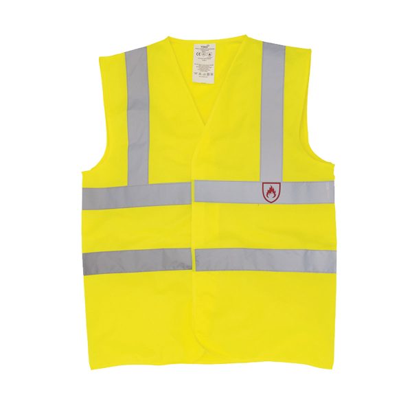 Vlamvertragende vesten in het geel en oranje